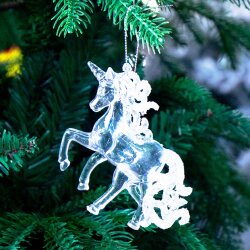 Yeni il yolkanızı daha sehrli etmək üçün şəffaf unicorn formalı yolka oyuncağı əla seçimdir. Zərif dizaynı və işığı əks etdirən şəffaf materialı ilə yolkanızda parlaq və nağılvari ab-hava yaradacaq. Xüsusilə uşaqların sevimlisi olacaq dekorasiyadır.