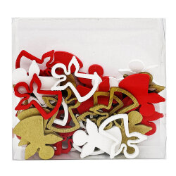 Bu mələk formalı yolka asılqan dəsti ağ, qırmızı və qızılı rənglərdə hazırlanmış incə dizayna malik bəzəklərdən ibarətdir. Təbii taxta materialı sayəsində həm ekoloji, həm də estetik baxımdan seçilir. Hər fiqurda mələk motivi yer alır və yolkanızı zərif şəkildə bəzəmək üçün idealdır. Bu dəst həm ev, həm də ofis dekorasiyası üçün uyğun olmaqla yanaşı, Yeni il hədiyyəsi kimi də əla seçimdir.