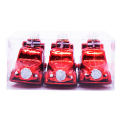 Bu 3-lü qırmızı avtomobil formalı yolka bəzəyi dəsti Yeni il ağacınıza nostaljik və parlaq bir hava qatmaq üçün ideal seçimdir. Qırmızı parıltılı dizaynı və detallı görünüşü ilə hər bir fiqur diqqət çəkici dekor elementi yaradır. Yüngül materialdan hazırlandığı üçün asılması çox rahatdır və ağac budaqlarında balanslı duruş təmin edir. Ev, ofis və mağaza dekorasiyaları üçün mükəmməl uyğunluğa malikdir.