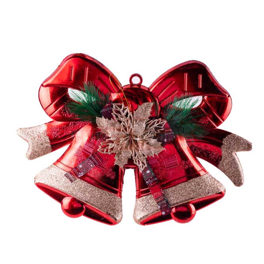 Yeni ilin sehrini evinizə gətirəcək zınqırov formalı yolka oyuncağı ilə dekorasiyanıza bayram ruhu əlavə edin! Qırmızı və qızılı tonların harmoniyası bu bəzəyi həm yolka üçün, həm də divar və qapı dekorasiyası üçün ideal edir. Parıltılı səthi və ortasındakı şam ağacı detalları sayəsində bu model hər küncü daha isti və bayram abu-havalı göstərir.