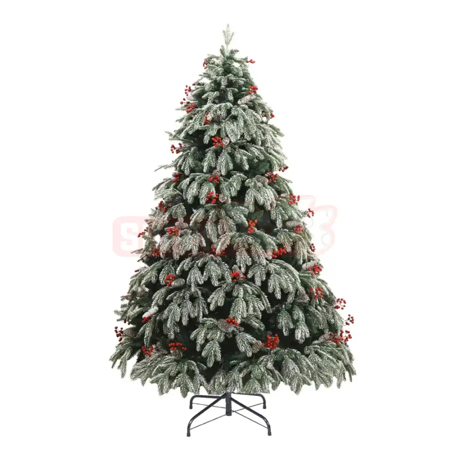 Bayram mövsümünün sehrini evinizə gətirən qarla örtülmüş bəzəkli Yeni il yolkası, təbii görünüşü və qırmızı giləmələri ilə klassik Yeni il atmosferini mükəmməl şəkildə əks etdirir. Ağ qar effekti, yaşıl budaqlarla ziddiyyət yaradaraq zövqlü və real görünüş yaradır. Giləmələr və konuslar sayəsində yolka bəzəksiz şəkildə belə dekorativ təsir göstərir. Yüksək keyfiyyətli materialdan hazırlanmış bu model uzunömürlü və stabil metal dayağa malikdir.