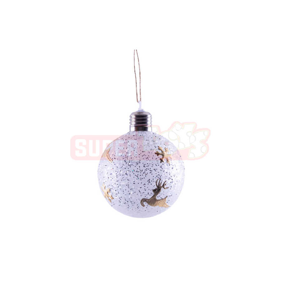 Parıltılı səthə və işıqlı dizayna malik bu maral fiqurlu LED yolka bəzəyi, Yeni İl ağacınıza sehrli bir parıltı əlavə edir. Gümüş və qızılı tonlarda hazırlanan bu top işıqlandırıldıqda isti və cazibədar bir görüntü yaradır. Üzərindəki maral naxışı klassik bayram motivlərini əks etdirir və evinizdə əsl Yeni İl abu-havası formalaşdırır. Həm yolka, həm də masaüstü dekoru kimi istifadə oluna bilər.