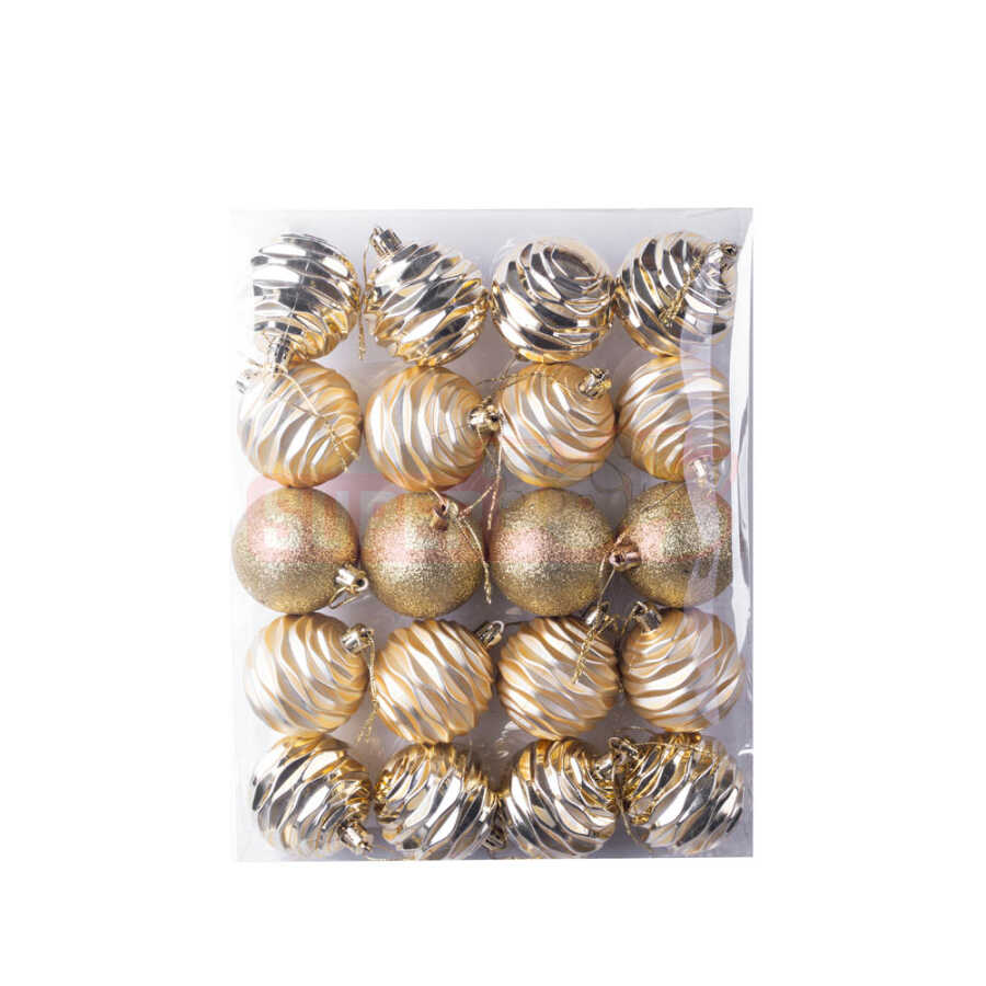 Yeni il ağacınızı elegant və parıltılı formada bəzəmək üçün 20 ədədlik qızılı yolka şarı dəsti. Fərqli fakturalı və parlaq dizaynı sayəsində yolkanızı daha möhtəşəm göstərir və bayram ab-havasını gücləndirir. Yüngül və sındırılmayan materialdan hazırlanıb, asma ipləri hazırdır. Ev, ofis və tədbir dekorasiyaları üçün ideal seçimdir.