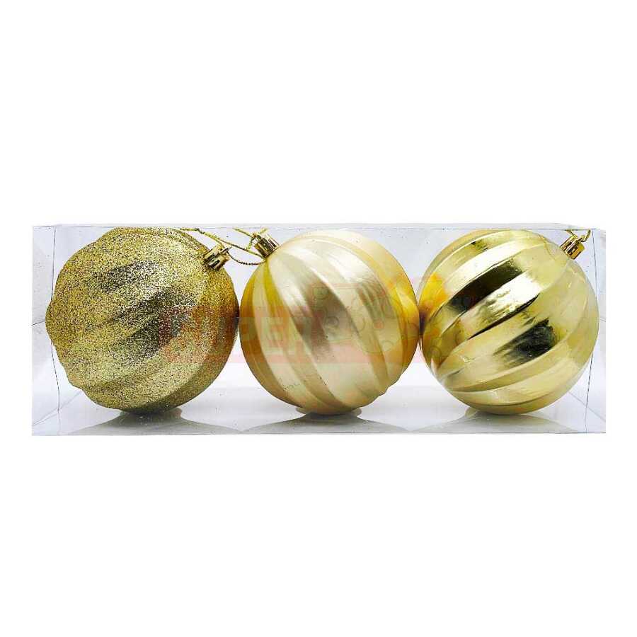 Parlaq və zərif görünüşlü qızılı yolka şarı dəsti (3 ədəd) Yeni il yolkanızı xüsusi və gözoxşayan edəcək. Qızılı rəngin klassik parlaqlığı ilə yolkanızı həm gündüz, həm də işıqlandırma altında daha gözəl göstərə bilərsiniz. Müxtəlif naxış və tekstura ilə hazırlanmış bu şarlar bayram əhvalını gücləndirəcək.