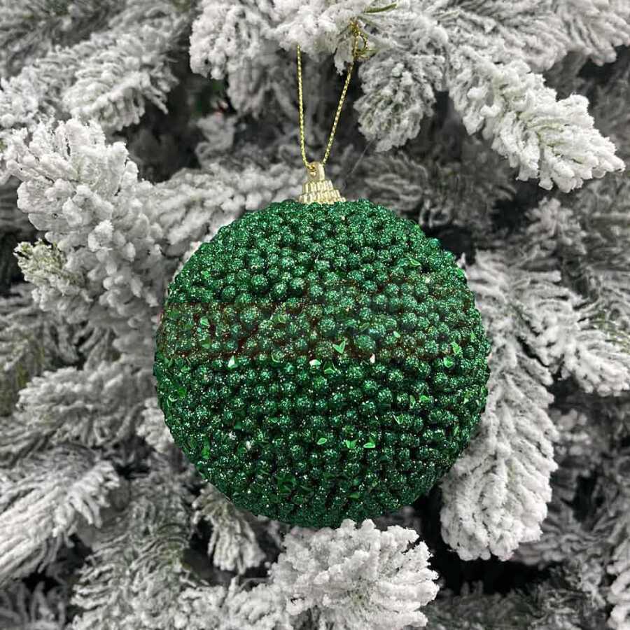 Yeni ilin ən gözəl anlarını işıqlandıracaq yaşıl bəzəkli yolka şarı ilə yolkanızı daha cazibədar edin. Xüsusi parıltılı səthi sayəsində işıq altında möhtəşəm şəkildə əks olunur və bayram ab-havasını daha da artırır. İstər ev dekorasiyasında, istərsə də ofis və restoran kimi məkanlarda istifadə üçün mükəmməl seçimdir.