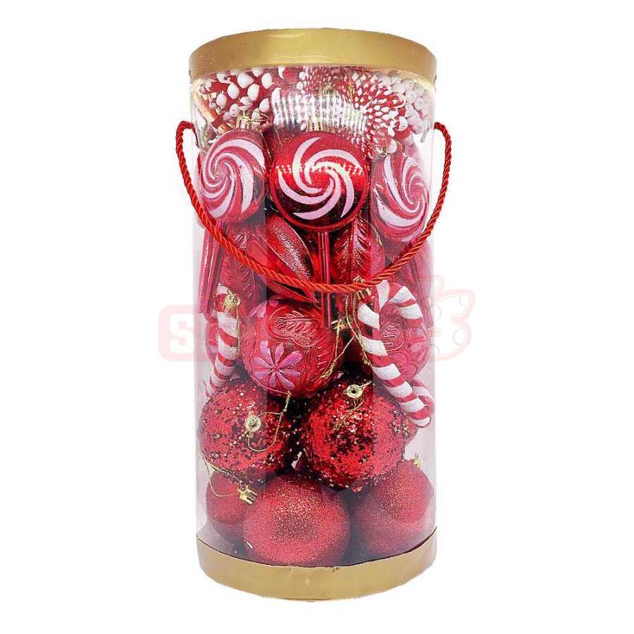 Şən və rəngarəng Yeni il ab-havasını evinizə gətirən yolka şarı dəsti qırmızı rəngdə olan müxtəlif formalı və naxışlı bəzəklərdən ibarətdir. Dəst içərisində klassik şarlar, konfet formalı oyuncaqlar və parıltılı bəzəklər yer alır. Həm yolkanızı möhtəşəm görünüşlə tamamlayır, həm də bayram dekorasiyasına canlılıq qatır. Estetik qablaşdırmada təqdim olunduğu üçün həm öz istifadəniz, həm də hədiyyə üçün ideal seçimdir. Bu məhsulu Supertoys mağazalarından və onlayn satışdan əldə edə bilərsiniz.