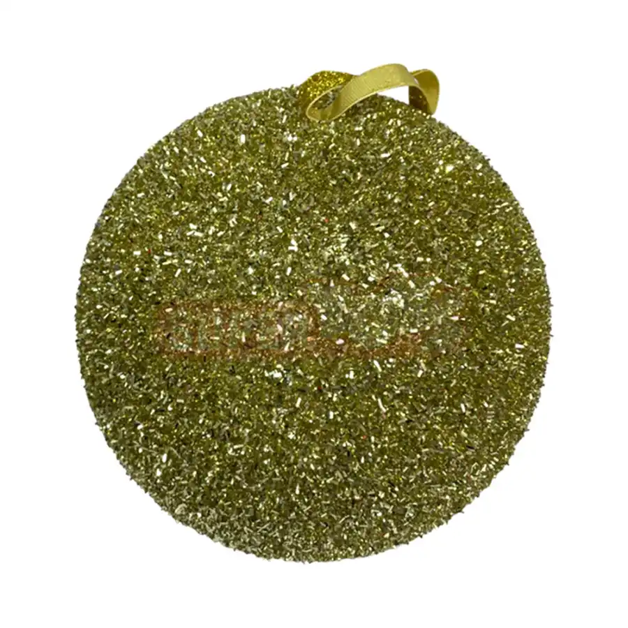 Bayram ağacınızı işıqlandırmaq üçün ideal seçim – qızılı parıltılı Yeni il bəzəyi. Tamamilə qızılı rəngli parıltılarla örtülmüş bu yolka şarı, işıq altında parlayaraq ətrafa bayram abu-havası saçır. Sadə, amma eyni zamanda zərif görünüşü sayəsində hər növ dekor üslubuna uyğun gəlir. Həm ev, həm ofis, həm də vitrin bəzəkləri üçün idealdır.