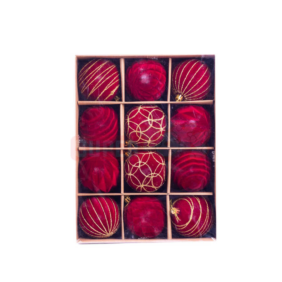 Qırmızı və qızılı rəngin ən zərif tonlarını birləşdirən bu 12-lik yeni il şarı dəsti yolkanıza premium, isti və klassik bir görünüş qazandırır. Məxmər (velvet) teksturası məhsula yumşaqlıq və dərinlik verir, qızılı xətt və spiral naxışlar isə vizual olaraq parıltı əlavə edir. Fərqli formalardakı şarlar kompozisiyanı daha zəngin edir və dekorasiyanı daha dolğun göstərir.