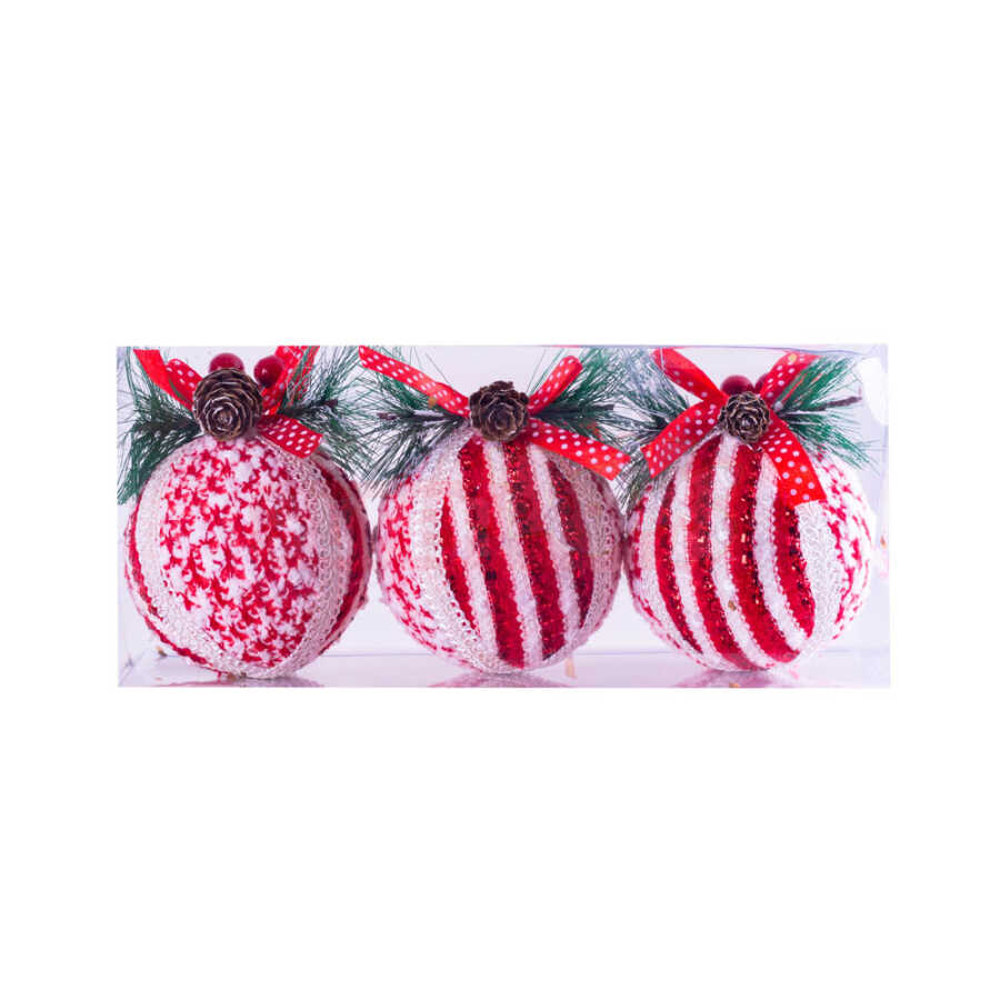 • 3 ədəd qırmızı-ağ rəngli yolka bəzəyi topu