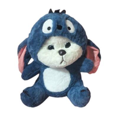 Bu 25 sm ölçülü yumşaq peluş ayıcığ, tünd mavi kostyumu və uzunqulaqlı papağı ilə Stitch üslubunda dizayn edilib. Geyimin üzərindəki sevimli ifadə və ayıcığın zərif toxuması onu uşaqlar üçün həm oyun dostu, həm də unikal hədiyyəlik oyuncaq halına gətirir. Yumşaq və təhlükəsiz materialı sayəsində kiçik yaş qrupları üçün tam uyğundur.