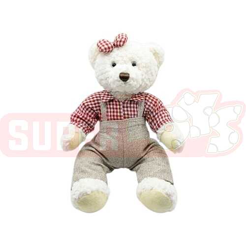 Bu yumşaq ayı oyuncağı, klassik dizaynı və şık geyimi ilə həm uşaqların, həm də böyüklərin sevimlisi olacaq. Ağ rəngli yumşaq xəzi, qırmızı-ağ dama-dama köynəyi və boz kombinezonu ilə bu ayı, otağınıza istilik və sevinc bəxş edəcək. 45 sm ölçüsü sayəsində qucaqlamaq üçün mükəmməldir.