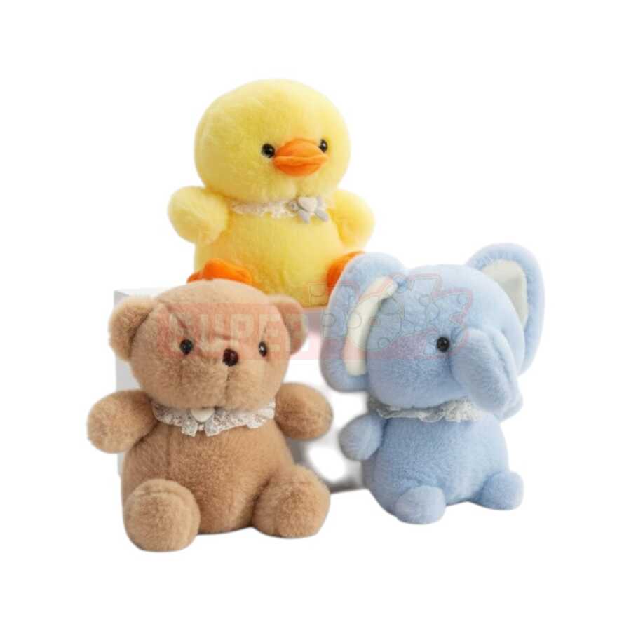 Yumşaq oyuncaq kolleksiyasına daxil olan ayı, fil və ördək formalı modellər uşaqlar üçün təhlükəsiz materiallardan hazırlanmış, toxunuşu xoş və qucaqlamaq üçün ideal dizayna malikdir. Zərif boyun detalları və sevimli üz ifadələri bu oyuncaqları həm oyun, həm də dekorativ məqsədlər üçün uyğun edir.
