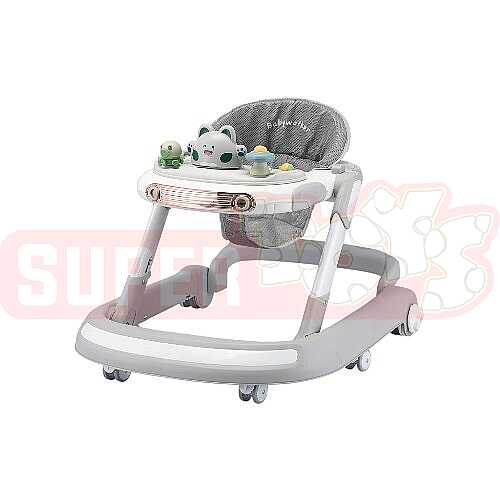 Yumşaq Erqonomik Oturacaq: "Babywalker" yazısı ilə bəzədilmiş boz tonlu parça oturacaq körpənin bədənini yumşaq şəkildə sarıyaraq ona tam dəstək verir.